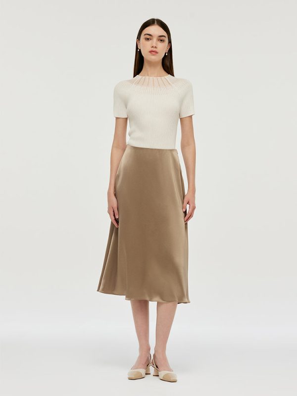 22 Momme Mulberry Silk Women Midi Dress With Leather Belt