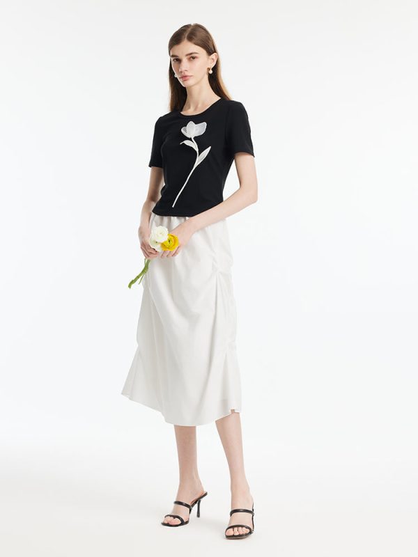 3D Rose T-Shirt And Ruched Skirt Two-Piece Set