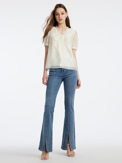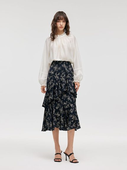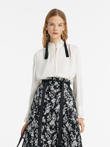 22 Momme Mulberry Silk Ruffle Women Blouse