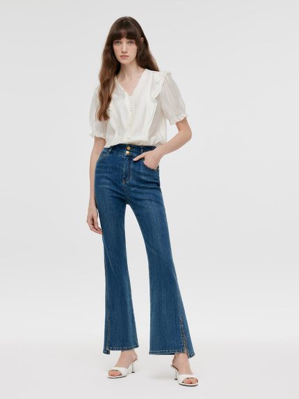 Oil-Resistant Wide Leg Full Length Women Jeans