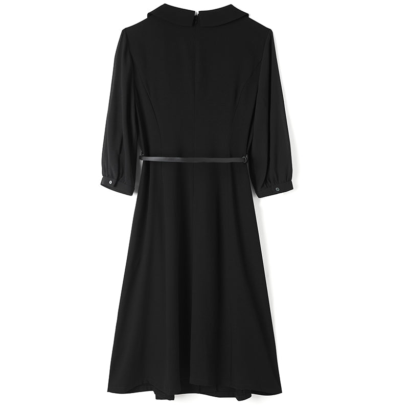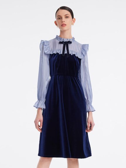 Ruffle Collar Velvet Patchwork Midi Collared Dress