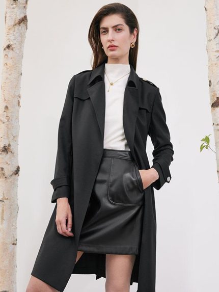 Worsted Woolen Women Trench Coat With Belt