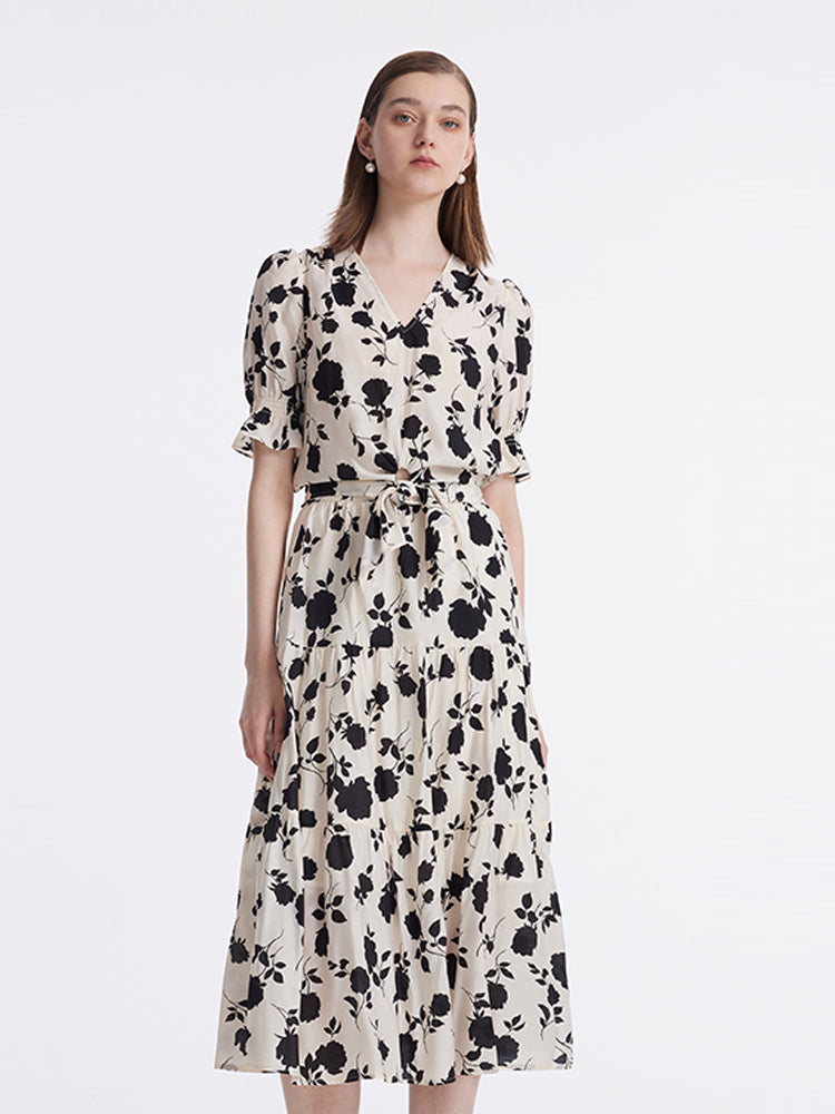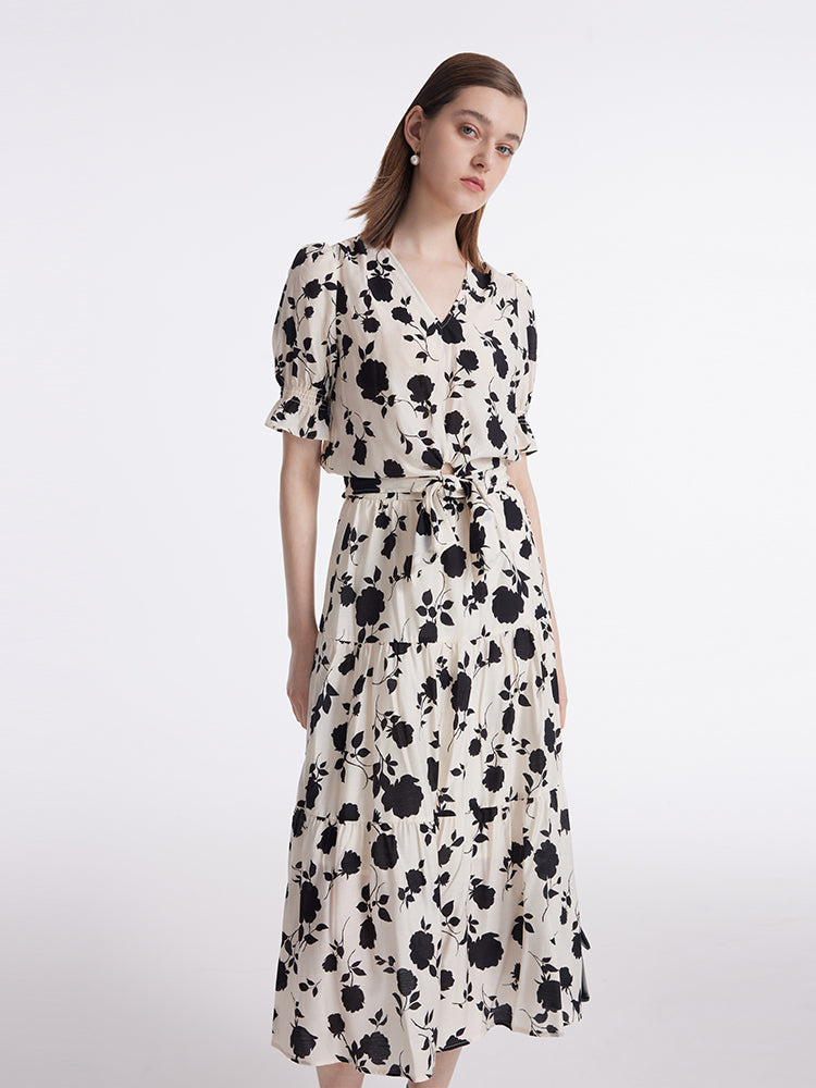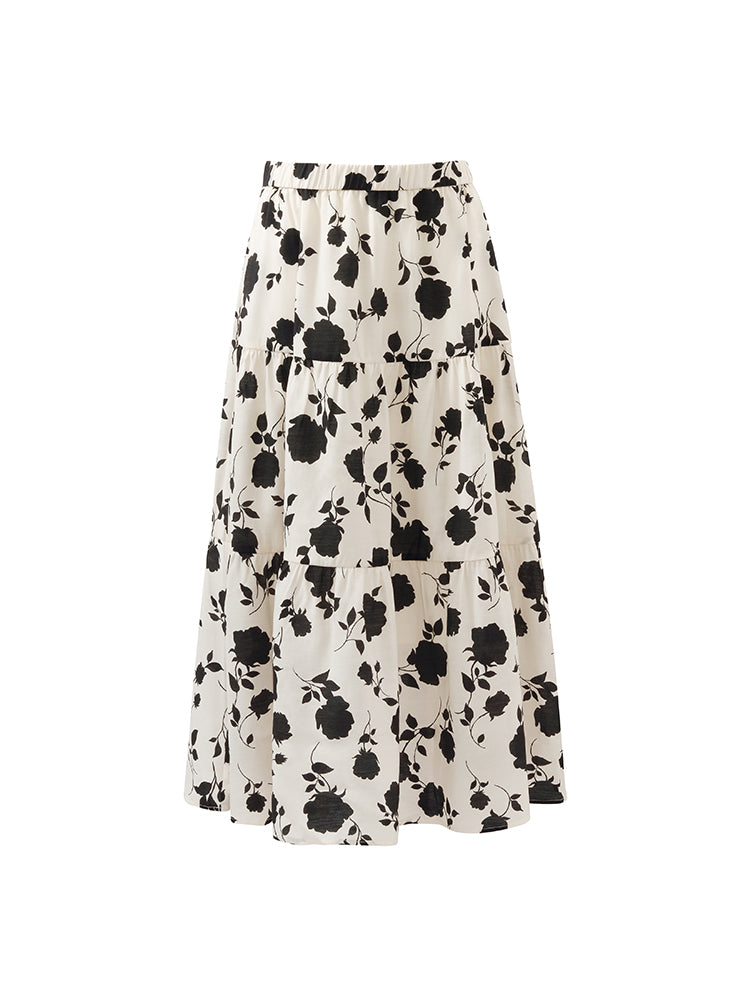 Acetate Rose Printed Blouse And Half Skirt Two-Piece Set