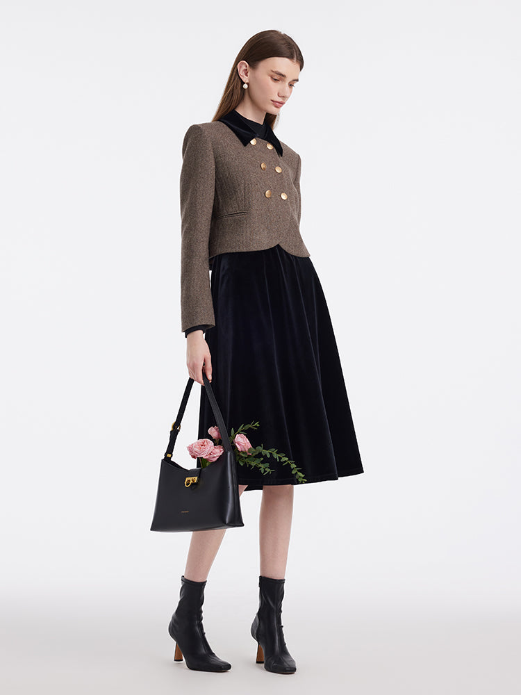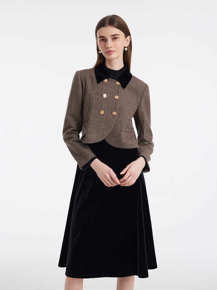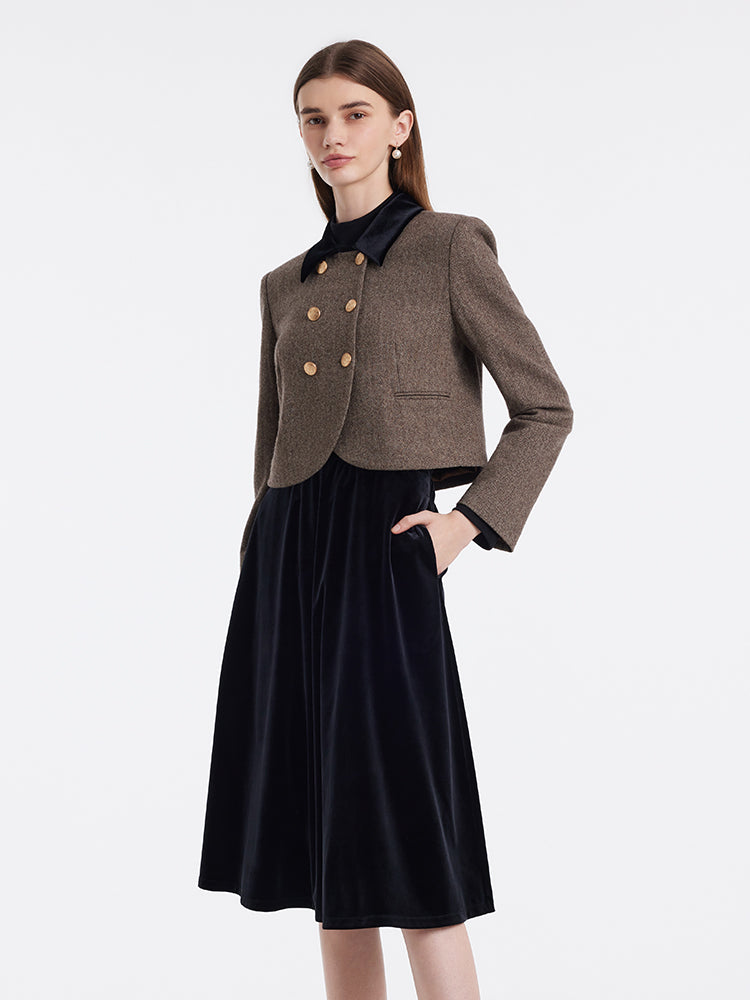 Washable Wool Double-Breasted Jacket And Skirt Two-Piece Set