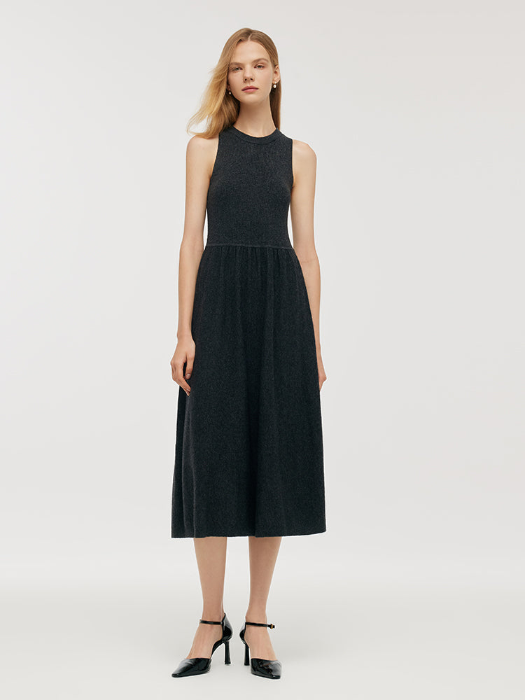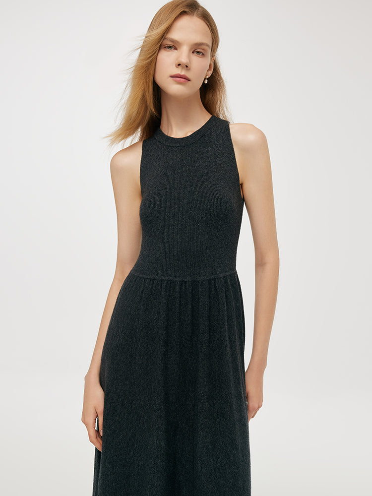 Wool Blend Multi-purpose Scarf And Sleeveless Knitted Midi Dress Two-Piece Set